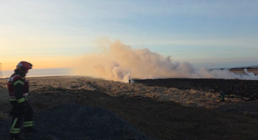 Sinubruni við Selfoss Brunavarnir Árnessýslu berjast við eld sem brennur í sinu sunnan við Selfoss. Fréttir