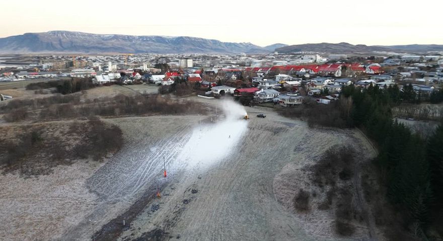Snjóframleiðsla hafin í Ártúnsbrekku Snjóframleiðsla hófst í Ártúnsbrekku í Reykjavík í morgun. Kuldatíð er í kortunum og aldrei að vita nema að börn og aðrir skíðagarpar muni geta rennt sér niður brekkuna áður en langt um líður. Sigurjón Ólason, tökumaður fréttastofu, tók þessar myndir af skíðabrekkunni. Fréttir
