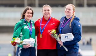 Vann brons og bætti Íslandsmetið um þrjá sentímetra Guðrún Karítas Hallgrímsdóttir sló í dag Íslandsmetið í sleggjukasti kvenna. Hún bætti gamla metið, sem var í hennar, eigu um þrjá sentímetra. Sport