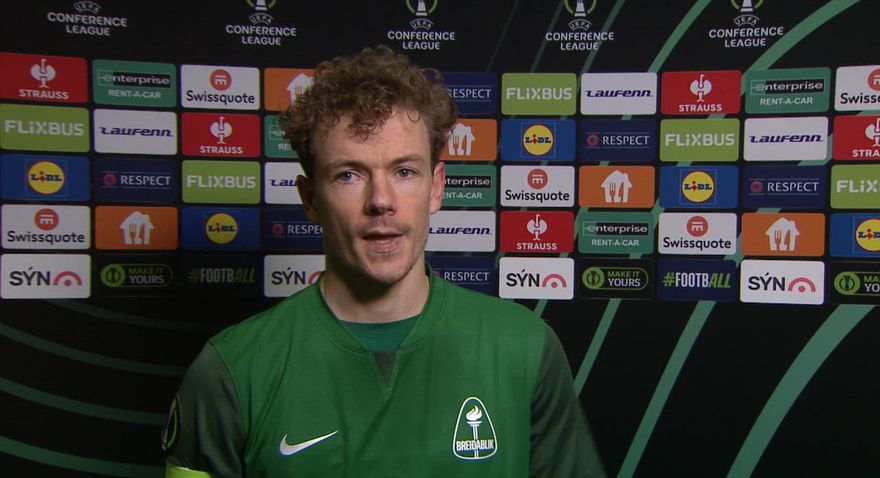 Höskuldur eftir sigurinn á Shamrock Höskuldur Gunnlaugsson, fyrirliði Breiðabliks, fór yfir málin eftir fyrsta sigur liðsins í Sambandsdeild Evrópu, 3-1 gegn Shamrock Rovers á Laugardalsvelli. Fótbolti
