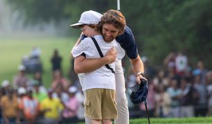 Uppfyllti óskina og fékk soninn í fangið á átjándu Tommy Fleetwood stóð uppi sem sigurvegari á DP World India Championship um helgina. Um leið rættist ósk sonar enska kylfingsins. Golf