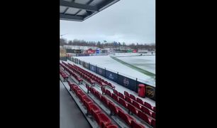 Kuldalegar aðstæður skömmu fyrir U21-landsleik Íslenska U21-landsliðið í fótbolta karla mætir Eistlandi í undankeppni EM en klukkutíma áður en hefja átti leik var enn mikill snjór á Þróttarvellinum. Landslið karla í fótbolta