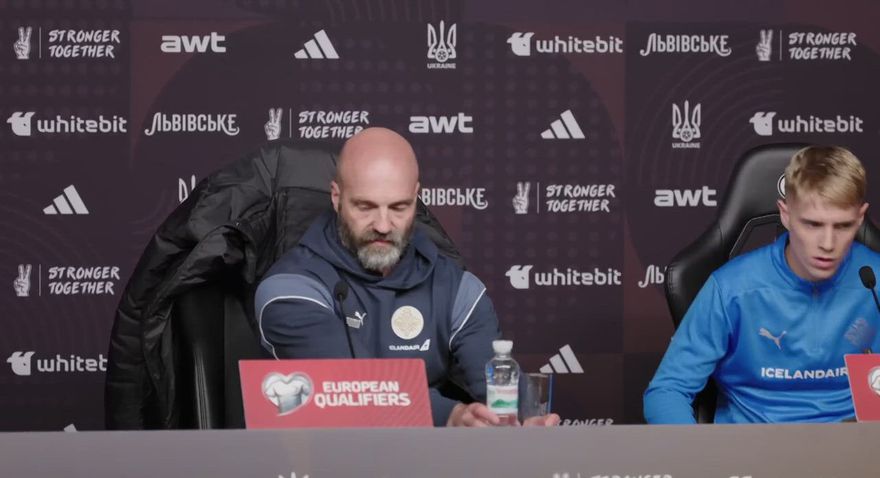 Blaðamannafundur Íslands fyrir úrslitaleikinn gegn Úkraínu Landsliðsþjálfarinn Arnar Gunnlaugsson og landsliðsfyrirliðinn Hákon Arnar Haraldsson sátu fyrir svörum á blaðamannafundi Íslands fyrir úrslitaleikinn gegn Úkraínu í undankeppni HM. Landslið karla í fótbolta