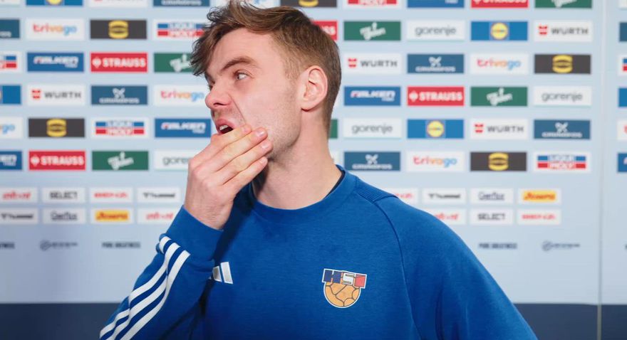 Óðinn og Bjarki brugðu á leik Bjarki Már Elísson reyndi sitt besta til að trufla viðtal við Óðin Þór Ríkharðsson. Landslið karla í handbolta