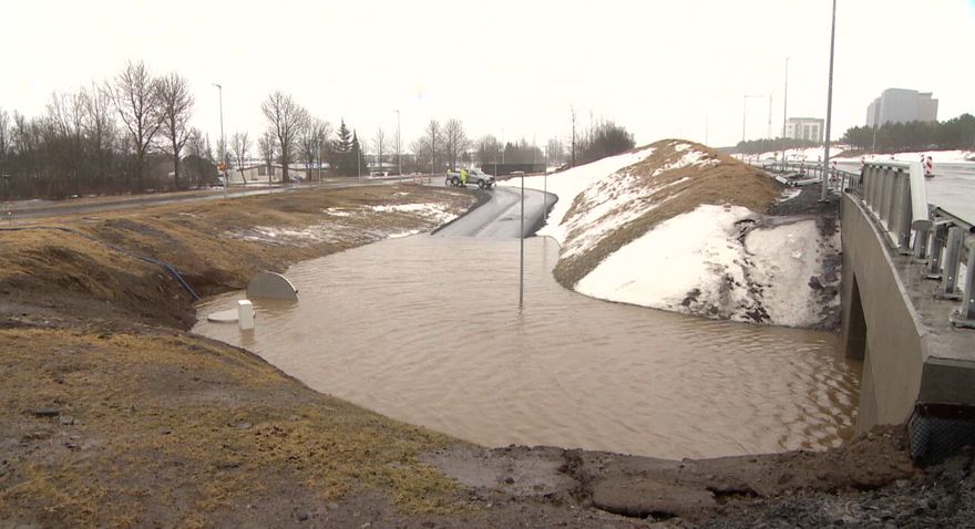 Vatnselgur í undirgöngum Gríðarstór vatnselgur hefur myndast í undirgöngum undir Breiðholtsbraut. Fréttir