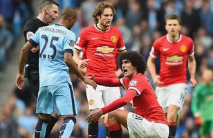 Fellaini hrækti á Aguero í gær | Sjáið myndbandið Marouane Fellaini, leikmaður Manchester United, er kominn í vandræði eftir að myndir Daily Mail frá leik United og Manchester City í gær sýna leikmanninn greinilega hrækja á Sergio Aguero hjá Manchester City. Enski boltinn 3.11.2014 09:34