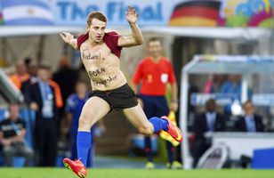 Strípalingurinn gisti fangageymslur Strípalingurinn sem hljóp inn á úrslitaleik Heimsmeistaramótsins vakti gríðarlega mikla athygli en hann sat brasilískar fangageymslur í morgun vegna athæfa sinna. Fótbolti 14.7.2014 23:30