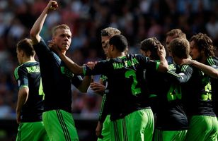 Fótbolti Hélt að Van Persie myndi drepa mig Eftir tíu leiki í röð án marks kom loksins að því að Hollendingurinn Robin van Persie skoraði fyrir Man. Utd á nýjan leik. Enski boltinn 14.4.2013 19:21 Steinþór tryggði fyrsta sigurinn fyrir Sandnes Steinþór Freyr Þorsteinsson var hetja Sandnes Ulf í dag er hann skoraði eina mark leiksins gegn Tromsö. Markið kom á 55. mínútu en þetta var fyrsti sigur Sandnes í norsku úrvalsdeildinni á þessu tímabili. Fótbolti 14.4.2013 18:54 Kolbeinn skoraði í toppslagnum Kolbeinn Sigþórsson og félagar í Ajax stigu afar mikilvægt skref í átt að hollenska meistaratitlinum í dag er þeir unnu toppslaginn gegn PSV, 2-3. Fótbolti 14.4.2013 16:30 Hamann: Istanbúl var toppurinn Þjóðverjinn Dietmar Hamann hefur verið á Íslandi um helgina en hann kom hingað út af árshátíð Liverpool-klúbbsins á Íslandi. Enski boltinn 14.4.2013 16:00 Þungu fargi létt af Van Persie | Myndband Robin Van Persie gerði mark fyrir Manchester United úr víti í dag en hann hefur ekki verið að finna markaskóna að undanförnu. Leikmaðurinn fagnaði því gríðarlega eins og sjá má á myndabandinu sem fylgir fréttinni. Enski boltinn 14.4.2013 15:39 Aron með sitt fyrsta mark fyrir AZ í sigri á Utrecht AZ Alkmaar vann frábæran sigur á Utrecht, 6-0, í hollensku úrvalsdeildinni í knattspyrnu í dag en leikurinn fór fram á heimavelli AZ. Fótbolti 14.4.2013 15:15 Pizzasendillinn ánægður með Alfreð Landsliðsmannsins Alfreðs Finnbogasonar biðu skemmtileg skilaboð þegar hann opnaði pizzukassa að loknu dagsverki sínu með Heerenveen. Fótbolti 14.4.2013 14:17 Ríkustu Íslendingarnir halda með Liverpool Samkvæmt Þjóðarpúlsi Capacent halda ríkustu Íslendingarnir með Liverpool í ensku úrvalsdeildinni. Enski boltinn 14.4.2013 13:58 Manchester United vinsælasta liðið á Íslandi Manchester United er vinsælasta enska knattspyrnuliðið á meðal Íslendinga samkvæmt könnun Þjóðarpúls Capacent. Úrtakið var 1.422 Íslendingar en svarhlutfallið var 60 prósent. Enski boltinn 14.4.2013 13:04 Frank de Boer: Get hugsað mér að taka við City Frank de Boer, knattspyrnustjóri Ajax, hefur lýst yfir áhuga á að taka yfir Manchester City í nánustu framtíð. Enski boltinn 14.4.2013 11:45 Sunderland valtaði yfir Newcastle Sunderland vann frábæran sigur á Newcastle, 3-0, í ensku úrvalsdeildinni í knattspyrnu en leikurinn fór fram á St. James' Park í Newcastle. Enski boltinn 14.4.2013 10:45 Messi og Iniesta hvíla í kvöld Það verður enginn Lionel Messi í liði Barcelona í dag er það spilar gegn Real Zaragoza. Stórstjarnan er enn að jafna sig á meiðslum. Fótbolti 14.4.2013 10:00 Getum spjarað okkur án Balotelli AC Milan þarf að sætta sig við að spila næstu þrjá leiki án framherjans Mario Balotelli þar sem hann hefur verið dæmdur í leikbann. Fótbolti 14.4.2013 09:00 Ekkert mál fyrir Barcelona án Messi Barcelona náði í kvöld sextán stiga forskoti á toppi spænsku úrvalsdeidlarinnar er liðið vann auðveldan útisigur á Real Zaragoza, 0-3. Fótbolti 14.4.2013 00:01 Man. Utd. kláraði Stoke | Forskotið aftur 15 stig Manchester United vann fínan sigur á Stoke, 2-0, í ensku úrvalsdeildinni í knattspyrnu í dag en leikurinn fór fram á Britannia-leikvanginum í Stoke. Enski boltinn 14.4.2013 00:01 Real Madrid með auðveldan sigur á Bilbao Real Madrid var ekki í neinum vandræðum með Athletic Bilbao þegar liðið bar sigur úr býtum 3-0 á San Mamés, heimavelli Bilbao. Fótbolti 14.4.2013 00:01 Man. City lagði Chelsea og komst í úrslit Man. City tryggði sér í dag sæti í úrslitum ensku bikarkeppninnar með sigri, 2-1, á Chelsea en liðin mættust á Wembley-leikvanginum í London. Enski boltinn 14.4.2013 00:01 Heiðar skoraði í sigri Cardiff Heiðar Helguson skoraði fyrir Cardiff í dag er liðið steig enn eitt skrefið í átt að úrvalsdeildarsæti með 3-0 sigri á Nott. Forest. Enski boltinn 13.4.2013 15:59 Ferguson segir Mancini vera að leita að samúð Sir Alex Ferguson, stjóri Man. Utd, var ekki par hrifinn af þeim ummælum Roberto Mancini, stjóra Man. City, um að Man. Utd hefði það of gott í ensku deildinni. Hann segir að Mancini sé að leita sér að samúð. Enski boltinn 13.4.2013 12:00 Liverpool skoraði ekki gegn botnliðinu | Úrslit dagsins Liverpool missteig sig enn eina ferðina í dag er liðið varð að sætta sig við markalaust jafntefli gegn botnliði Reading. Enski boltinn 13.4.2013 00:01 Wigan í bikarúrslit Wigan tryggði sér í dag sæti í úrslitum ensku bikarkeppninnar í fyrsta skipti í sögu félagsins. Liðið lagði þá Millwall, 2-0, á Wembley. Enski boltinn 13.4.2013 00:01 Rodgers: Markvörður Reading var ótrúlegur Brendan Rodgers, stjóri Liverpool, var að vonum svekktur með að hafa ekki klárað leikinn gegn botnliði Reading í dag. Enski boltinn 13.4.2013 00:01 Wenger missti aldrei trúna Arsenal vann dramatískan sigur á Norwich í dag og komst um leið upp í þriðja sæti ensku úrvalsdeildarinnar. Arsenal skoraði þrjú mörk á lokamínútunum. Enski boltinn 13.4.2013 00:01 Ég þarf engin ráð frá Guardiola Jupp Heynckes, þjálfari Bayern München, er búinn að gera frábæra hluti með þýska liðið á þessu tímabili. Bayern er að bursta þýsku deildina og fór auðveldlega í gegnum Juventus í átta liða úrslitum Meistaradeildarinnar. Fótbolti 12.4.2013 23:30 Ferguson: Vináttulandsleikirnir eru vandamálið ekki félögin Sir Alex Ferguson, knattspyrnustjóri Manchester United, er ekki sammála enska landsliðsþjálfaranum Roy Hodgson um að enskir landsliðsleikmenn setji landslið sín í annað sætið á eftir félagsliðunum og að kröfur félagsliðanna sé að draga úr möguleikum enska landsliðsins. Enski boltinn 12.4.2013 23:00 Ancelotti vill framlengja samning sinn hjá PSG Carlo Ancelotti, þjálfari Paris St Germain, sæ