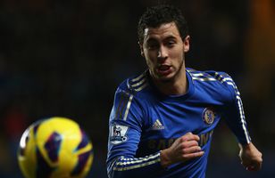 Hazard fær ekki lengra bann fyrir boltastráka-sparkið Eden Hazard, vængmaður Chelsea, fær "bara" þriggja leikja bann fyrir rauða spjaldið sem hann fékk á móti Swansea í undanúrslitaleik deildarbikarsins á dögunum. Hazard fékk þá rautt fyrir að sparka í boltastrák Swansea sem var að reyna að tefja leikinn. Enski boltinn 31.1.2013 17:39