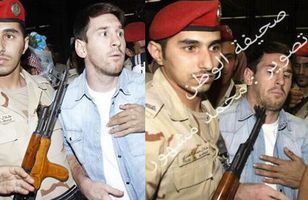 Beindi byssu að andliti Messi Besti knattspyrnumaður heims, Argentínumaðurinn Lionel Messi, kom til Sádi Arabíu í gær. Á leið sinni af flugvellinum virtist hann óttast um eigið líf. Fótbolti 13.11.2012 23:30