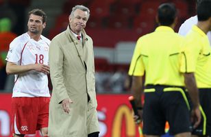Þjálfari Svisslendinga sýndi dómaranum fingurinn Ottmar Hitzfeld, þjálfari svissneska landsliðsins, er líklega á leiðinni í bann eftir að hann sýndi dómaranum fingurinn eftir jafnteflið á móti Noregi á föstudagskvöldið. Hitzfeld segist hafa verið að gefa sjálfum sér fingurinn en það þykir flestum vera veik vörn. Fótbolti 14.10.2012 13:00