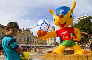 Lukkudýr HM 2014 fær ekki að vera í friði Brasilíumenn eru greinilega ekki nógu sáttir við nýja lukkudýrið fyrir HM í fótbolta 2014 því tvisvar sinnum á stuttum tíma hafa skemmdarvargar eyðilegt uppblásna útgáfa af lukkudýrinu. Fótbolti 10.10.2012 15:15