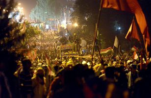 Reyna að komast að stjórnarbyggingum með vírklippum og kranabílum Tugþúsundir mótmælenda í Pakistan krefjast afsagnar Nawaz Sharif, forseta landsins. Erlent 20.8.2014 07:00