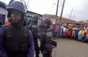 Öryggissveitir kallaðar út í Monróvíu Fjórir létust þegar óttaslegnir íbúar West Point-hverfisins í Monróvíu, höfuðborg Líberíu þustu hundruðum saman út á götur og köstuðu grjóti að óeirðalögreglu. Hverfið hefur verið sett í sóttkví til að hindra útbreiðslu ebólu í borginni. Erlent 20.8.2014 22:57
