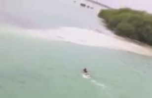 Stærðarinnar krókódíll situr um ferðamann Myndbandið sýnir hvernig maðurinn reynir hvað hann getur til að komast að landi svo hann endi ekki í maga skriðdýrsins. Erlent 16.8.2014 11:33