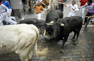 Fjórir slasaðir í Pamplóna Fjórir voru fluttir á sjúkrahús eftir fyrsta nautahlaup San Fermín hátíðarinnar í Pamplóna á Spáni í morgun. Erlent 7.7.2014 10:44