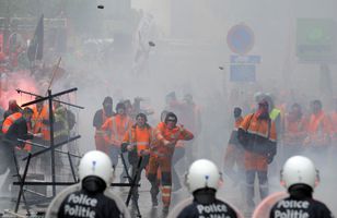 Þúsundir mótmæla í Brussel Mótmælin voru friðsamleg framan af en til átaka kom þegar mótmælendur hófu að kasta grjóti, appelsínum og öðru lauslegu. Erlent 4.4.2014 21:00