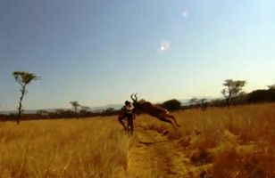 Antilópa stangaði hjólreiðamann - myndbandið ótrúlega vinsælt Suður-Afríski hjólreiðagarpurinn Evan van der Spuy, var að keppa í hjólreiðakeppni á náttúruverndarsvæði í Suður-Afríku á mánudaginn þegar antilópa stekkur skyndilega upp úr kjarrinu og stangar hann af hjólinu. Erlent 12.10.2011 22:30