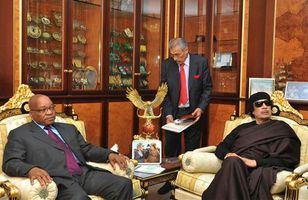 Viðræður Gaddafís og Zuma árangurslausar Jacob Zuma forseti Suður Afríku heimsótti Gaddafí leiðtoga Líbíu í gær til þess að reyna að koma á vopnahléi í landinu og fá leiðtogann til að stíga til hliðar. Viðræðunum lauk án niðurstöðu. Zuma segir að Gaddafí sé tilbúinn til að lýsa yfir vopnahléi en að hann sé ófánlegur til þess að fara frá völdum. Erlent 31.5.2011 09:04