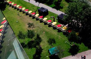 Heimsmet slegið í miðborg Lundúna Heimsmet var slegið í miðborg Lundúna í vikunni þegar að sett var upp lengsta lautarferðarborð í heimi. Borðið var 90 metrar á lengd og sátu yfir 350 manns við það. Erlent 26.5.2011 20:45
