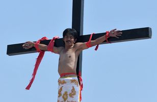 Minntust pínu Krists Kristnir menn á Fillippseyjum minntust pínu krists í dag, á föstudaginn langa, eins og venja er.Tugir manna húðstrýktu sig með bambusvið. Erlent 2.4.2010 17:00