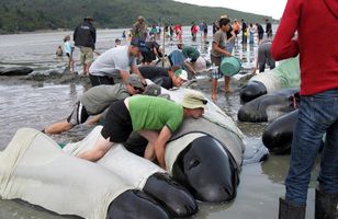 Um 120 grindhvalir drápust við Nýja Sjáland Minnst 120 grindhvalir drápust á tveimur sólarhringum á Nýja Sjálandi um helgina. Yfir 100 hvalir strönduðu við Suðurey Nýja Sjálands á laugardaginn, en aðrir 20 drápust við Norðurey. Erlent 28.12.2009 15:50