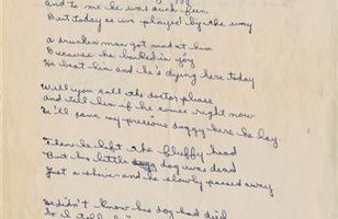 Ljóð eftir Bob Dylan 16 ára boðið upp Handskrifað ljóð eftir Robert Zimmerman frá 1957 verður boðið upp hjá Christie‘s í New York í júní. Zimmerman þessi er vitaskuld betur þekktur undir nafninu Bob Dylan og samdi ljóðið, að því er talið er, 16 ára gamall meðan hann dvaldi í sumarbúðum gyðinga í Wisconsin. Erlent 20.5.2009 08:25