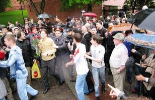 Hommar og lesbíur handtekin í Moskvu Óeirðarlögreglna í Moskvu handtók fjöldann allan af samkynhneigðum einstaklingum í dag. Þeir vildu vekja athygli á réttindabaráttu samkynhneigðra í Rússlandi en borgarstjóri Moskvu, Yuri Luzhkov hefur meðal annars látið hafa eftir sér að gleðiganga samkynhneigðra þar í landi sé „satanískt". Erlent 16.5.2009 10:46