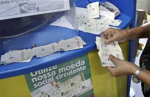 Fátækrahverfi með eigin banka og gjaldmiðil Í borginni Fortaleza í Norðaustur-Brasilíu er fátækrahverfi sem heitir Palmeiras. Þar er heimili 32.000 manns. Palmeiras er þó ef til vill ekki hefðbundið fátækrahverfi. Það heldur úti sínum eigin gjaldmiðli sem kallast palma og hefur sinn eigin banka þótt húsnæðið sem hann er í sé svo sem ekki í neinum Wall Street-stíl. Það er að hruni komið. Erlent 12.5.2009 07:56