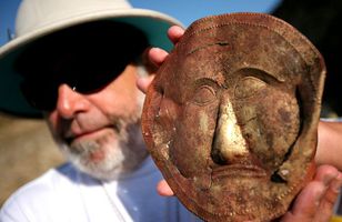 Fundu forna gullgrímu Fornleifafræðingar fundu um helgina 2.400 ára gamla gullgrímu í fornu grafhýsi í Búlgaríu. Einnig fannst gullhringur með grískri áletrun og mynd af skeggjuðum manni auk annarra smáhluta í gröf frá tímum Þrakverja. Erlent 17.7.2007 02:30