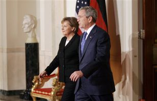 Bush hefði viljað meiri virðingu yfir aftöku Saddam Bush Bandaríkjaforseti hefði viljað að meiri virðing hefði verið yfir aftöku Saddam Hussein. Bush lét þessi orð falla á blaðamannafundi í Þýskalandi þar sem hann fundar nú með Angelu Merkel, kanslara Þýskalands. Erlent 5.1.2007 07:30
