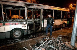 Kveiktu í strætó í úthverfi Parísar Hópur hettuklæddra ungmenna, rak í nótt farþega út úr strætisvagni í úthverfi í vesturhluta Parísar og kveikti síðan í honum. Enginn slasaðist í eldinum en strætóinn er gerónýtur þrátt fyrir að slökkviliðsmenn hafi slökkt fljótt og vel í honum. Erlent 26.10.2006 07:30