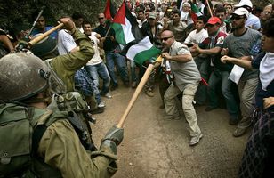 Snúið bökum saman Palestínumenn og gyðingar slógust hlið við hlið við ísraelska hermenn á Vesturbakkanum í dag. Hundruð Palestínumanna og gyðinga komu saman í þorpinu Bilin til þess að mótmæla aðskilnaðarmúrnum sem verið er að reisa til að skilja landsvæði Palestínumanna frá Ísrael. Erlent 3.6.2005 00:01