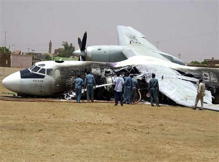 Farþegaflugvél hlekktist á í flugtaki í Kartúm, höfuðborg Súdans, í morgun með þeim afleiðingum að að minnsta kosti fimm létust og tveir slösuðust. Flugvélin var í flugtaki þegar flugmanni mistókst að koma henni á loft. Þurfti hann því að nauðhemla en við það kviknaði í öðrum hreyflinum og í kjölfarið fór vélin á hliðina. Vélin, sem er af gerðinni Antonov, var á leið til Darfur-héraðs og voru um 40 manns í henni en ekki er enn ljóst hvort meirihluti farþega slapp ómeiddur.