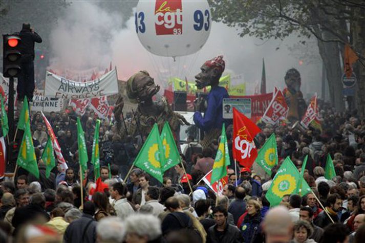 Mótmæltu einkavæðingu í Frakklandi 4. október 2005 00:01 Um milljón verkamenn lögðu niður vinnu og gengu um götur borga í Frakklandi í dag til þess að mótmæla fyrirhuguðum efnahagsumbótum í landinu. Mótmælendur andmæltu einkavæðingu ýmissa ríkisfyrirtækja auk þess sem sífellt lakari lífskjörum í landinu var mótmælt. Tafir urðu á lestar- og strætósamgöngum víða í Frakklandi og sömuleiðis tafir á flugi til og frá París. Til átaka kom á milli lögreglu og mótmælenda á Korsíku en þar hafa verið mikil mótmæli vegna áætlunar um að selja ferjufélag í eigu ríkisins. Erlent Fréttir Mest lesið Setur „stærsta samning í sögunni“ í uppnám Erlent Karólína Helga skákaði sitjandi oddvita í Hafnarfirði Innlent Önnur stúlka með móður sinni þegar Högni var klófestur Innlent Líkir kærunni við „faglega aftöku“ Innlent Evrópuleiðtogar bregðast við: „Við látum ekki fjárkúga okkur“ Erlent Ekki útilokað að Ísland sæti Grænlandstollum Erlent Ísland standi með Grænlandi og Danmörku Innlent „Í mínum huga eru þetta klárar ærumeiðingar“ Innlent Einn endaði á hliðinni og þrjú klemmdust á milli Innlent Var í símanum við neyðarlínuna þegar ekið var aftan á hann Innlent Fleiri fréttir Setur „stærsta samning í sögunni“ í uppnám Evrópuleiðtogar bregðast við: „Við látum ekki fjárkúga okkur“ Macron: „Engin ógnun eða hótun mun hafa áhrif á okkur“ Ekki útilokað að Ísland sæti Grænlandstollum Þyrfti líklega að leggja toll á allt Evrópusambandið Reyna að rjúfa nettenginu endanlega Boðar 10 prósenta toll á Norðurlönd, Breta, Frakka, Þjóðverja og fleiri Þúsundir baula á bandaríska sendiherrann Ítalar lögðu hald á skip frá Rússlandi Enn deilt um Epstein-skjölin: Dómsmálaráðuneytið segir dómara ekki mega skipa óháðan eftirlitsaðila Bein útsending: Flytja fimm þúsund tonna eldflaug á skotpall fyrir tunglskot Danmörk „pínulítið land“ með „pínulítinn her“ Hótar tollum á ríki sem standa með Grænlendingum Hafa náð einu og hálfu prósenti af Úkraínu á þremur árum Milljónir Bandaríkjamanna hafi þungar áhyggjur vegna Grænlands Yfirvöld sögð rukka háar fjárhæðir fyrir afhendingu líka mótmælenda Fyrrverandi forseti dæmdur í fimm ára fangelsi „Þetta er ekki það sem við samþykktum“ Tók við verðlaunapeningnum og hyggst eiga hann Hafi afhent Trump Friðarverðlaun Nóbels Krefjast enn að fá að senda sérsveitarmenn til Mexíkó Veiki geimfarinn kominn aftur til jarðar Tóku enn eitt skipið Trump hótar að siga hernum á mótmælendur Kennir Selenskí enn og aftur um Ólafur Ragnar við CNBC: Afleiðingarnar „gífurlegar“ ef Bandaríkin tækju Grænland með valdi Þingmenn sem Trump sagði heimska lúffuðu Witkoff segir annan áfanga friðaráætlunarinnar hafinn Musk fellst á að hætta að framleiða kynferðislegar myndir en bara sums staðar Hætta vinnslu umsókna innflytjenda frá 75 ríkjum Sjá meira