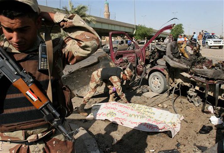 Níu fórust í sjálfsmorðsárás 6. október 2005 00:01 Níu fórust í sjálfsmorðsárás nærri olíumálaráðuneytinu í Bagdad í dag, og heimatilbún sprengja sprakk skammt frá hervagni í borginni. Ofbeldi setur mark sitt á síðustu dagana fyrir þjóðaratkvæðagreiðslu um nýja stjórnarskrá, sem fer fram á miðvikudaginn kemur. Hersveitir berjast nú af hörku gegn uppreisnarmönnum í vesturhluta landsins. Erlent Fréttir Mest lesið Setur „stærsta samning í sögunni“ í uppnám Erlent Karólína Helga skákaði sitjandi oddvita í Hafnarfirði Innlent Önnur stúlka með móður sinni þegar Högni var klófestur Innlent Líkir kærunni við „faglega aftöku“ Innlent Evrópuleiðtogar bregðast við: „Við látum ekki fjárkúga okkur“ Erlent Ekki útilokað að Ísland sæti Grænlandstollum Erlent „Í mínum huga eru þetta klárar ærumeiðingar“ Innlent Ísland standi með Grænlandi og Danmörku Innlent Einn endaði á hliðinni og þrjú klemmdust á milli Innlent Var í símanum við neyðarlínuna þegar ekið var aftan á hann Innlent Fleiri fréttir Setur „stærsta samning í sögunni“ í uppnám Evrópuleiðtogar bregðast við: „Við látum ekki fjárkúga okkur“ Macron: „Engin ógnun eða hótun mun hafa áhrif á okkur“ Ekki útilokað að Ísland sæti Grænlandstollum Þyrfti líklega að leggja toll á allt Evrópusambandið Reyna að rjúfa nettenginu endanlega Boðar 10 prósenta toll á Norðurlönd, Breta, Frakka, Þjóðverja og fleiri Þúsundir baula á bandaríska sendiherrann Ítalar lögðu hald á skip frá Rússlandi Enn deilt um Epstein-skjölin: Dómsmálaráðuneytið segir dómara ekki mega skipa óháðan eftirlitsaðila Bein útsending: Flytja fimm þúsund tonna eldflaug á skotpall fyrir tunglskot Danmörk „pínulítið land“ með „pínulítinn her“ Hótar tollum á ríki sem standa með Grænlendingum Hafa náð einu og hálfu prósenti af Úkraínu á þremur árum Milljónir Bandaríkjamanna hafi þungar áhyggjur vegna Grænlands Yfirvöld sögð rukka háar fjárhæðir fyrir afhendingu líka mótmælenda Fyrrverandi forseti dæmdur í fimm ára fangelsi „Þetta er ekki það sem við samþykktum“ Tók við verðlaunapeningnum og hyggst eiga hann Hafi afhent Trump Friðarverðlaun Nóbels Krefjast enn að fá að senda sérsveitarmenn til Mexíkó Veiki geimfarinn kominn aftur til jarðar Tóku enn eitt skipið Trump hótar að siga hernum á mótmælendur Kennir Selenskí enn og aftur um Ólafur Ragnar við CNBC: Afleiðingarnar „gífurlegar“ ef Bandaríkin tækju Grænland með valdi Þingmenn sem Trump sagði heimska lúffuðu Witkoff segir annan áfanga friðaráætlunarinnar hafinn Musk fellst á að hætta að framleiða kynferðislegar myndir en bara sums staðar Hætta vinnslu umsókna innflytjenda frá 75 ríkjum Sjá meira