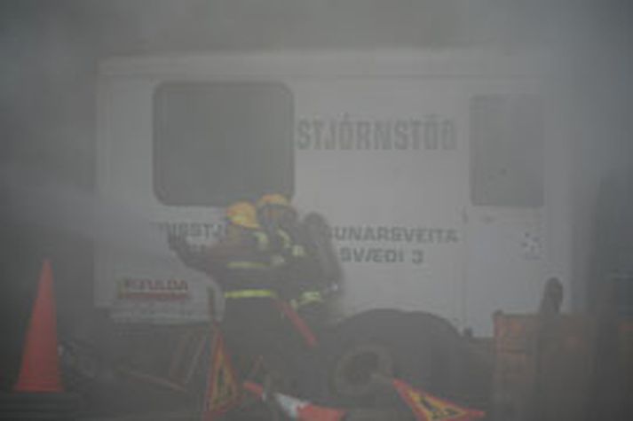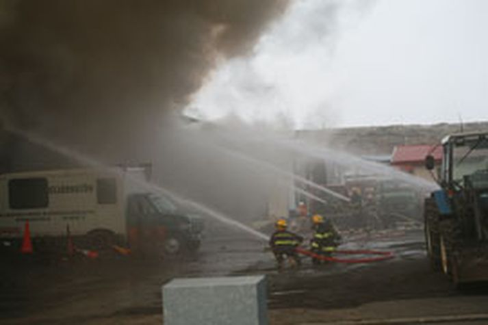 Slökkvistarfi í flugeldasölu hjálparsveitar skáta í Hveragerði er nú að ljúka en ljóst er að tjón af völdum eldsvoðans er mikið. Stór hluti búnaðar hjálparsveitarinnar er ónýtur og þá urðu miklar skemmdir á verkstæði við hlið flugeldasölunnar. Ný grafa sem var þar inni er ónýt. Opinberu skemmtanahaldi, þar með talið áramótabrennu Hvergerðinga, hefur verið frestað. MYND/Kiddi rót Nú þykir ljóst að neisti hljóp úr heftibyssu í kveikiþráð flugelda en verið var að undirbúa flugeldasýningu fyrir kvöldið. Fulltrúar frá Slysavarnafélaginu Landsbjörgu voru í Hveragerði síðdegis og fóru yfir málin með heimamönnum. Mesta mildi þykir að ekki fór verr. Einn maður brákaðist á fæti þegar fólk hljóp út úr flugeldasölunni en rúmur tugur manna var inni þegar eldurinn kom upp. Flugeldalager sem í húsinu var slapp en hann var í tryggri geymslu handan við eldvarnavegg. MYND/Kiddi rótMYND/Kiddi rótMYND/Kiddi rótMYND/Kiddi rótMYND/Kiddi rótMYND/Kiddi rótMYND/Kiddi rótMYND/Kiddi rótMYND/Kiddi rótMYND/Kiddi rótMYND/Kiddi rótMYND/Kiddi rótMYND/Kiddi rót