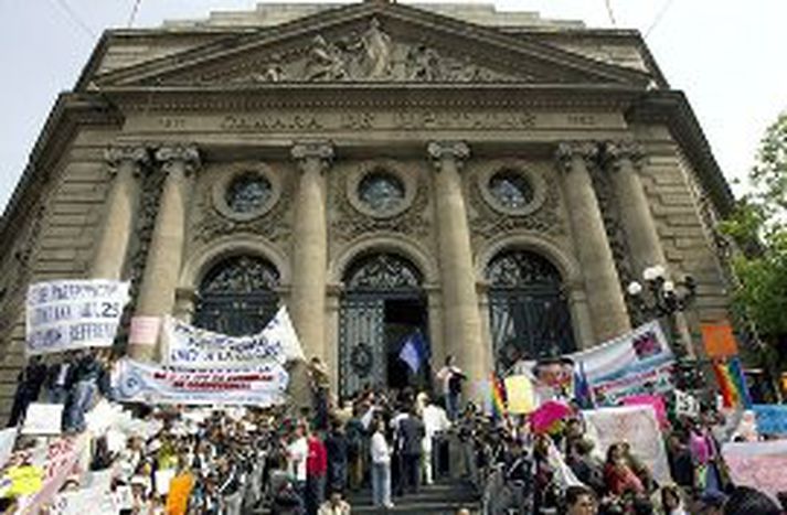Réttindi samkynhneigðra aukin í Mexíkóborg 9. nóvember 2006 23:50 Mót- og meðmælendur nýju laganna fyrir utan þinghúsið í dag. MYND/AP Þingið í Mexíkóborg lögleiddi í dag borgaralega hjónavígslu samkynhneigðra. Í Mexíkó er næstmesti fjöldi kaþólikka og mómæltu margir þessum nýju lögum. Þingið, sem vinstri hreyfingar ráða yfir, samþykkti tillöguna með yfirgnæfandi meirihluta, eða 43 atkvæði gegn 17. Fyrirmyndin að þessari lagasetningu kemur frá Frakklandi og koma á fót einkaeignarétt, lífeyri, erfðum og umgengnisrétti fyrir samkynhneigða. Hinsvegar mega þeir ekki gifta sig í kirkju eða ættleiða börn. Mótmælendur fyrir utan þinghúsið létu ókvæðisorð dynja á hópum samkynhneigðra sem fögnuðu ákvörðununni mikið. Kaþólska kirkjan í Mexíkó hefur fordæmt borgaralega gitingu samkynhneigðra og eru um 90% landsmanna kaþólskir. Aðeins eru fleiri kaþólikkar í Brasilíu. Erlent Fréttir Mest lesið Trump nefnir nýja kynslóð orrustuskipa í höfuðið á sjálfum sér Erlent Hyggst kæra dyraverði Auto til lögreglu Innlent Virðist ekki vera hægt á Íslandi Viðskipti innlent Fjölgun eldri kvenna í Kvennaathvarfi: „Þessar konur bíða ekki“ Innlent Hiti geti mest náð átján stigum Veður Skapari Call of Duty lést í bílslysi Erlent „Ótrúlega sorglegt að pabbi sé búinn að vera svona lengi í þessari stöðu“ Innlent Ný könnun Maskínu: „Væri alveg ný staða í íslenskum stjórnmálum“ Innlent Ráðist á pilt á heimleið Innlent Kínverjar og Rússar lýsa yfir stuðningi við Venesúela Erlent Fleiri fréttir Kínverjar og Rússar lýsa yfir stuðningi við Venesúela Skapari Call of Duty lést í bílslysi Trump nefnir nýja kynslóð orrustuskipa í höfuðið á sjálfum sér „Bandaríkin eiga ekki að taka yfir Grænland“ Nýr ritstjóri stöðvaði umfjöllun um brottvísanir Trump Breiddi út faðminn fyrir rasista: „Þið þurfið ekki að biðjast afsökunar á að vera hvít lengur“ Sprengdu rússneskan hershöfðingja í loft upp í Moskvu Undirbúningur árásarinnar stóð yfir í marga mánuði Trump skipar sendifulltrúa fyrir Grænland Segir unnið að því að móta sameiginlega nálgun Bandaríkjanna, Úkraínu og Evrópu Sýknaður af nauðgun eftir að hafa verið skimaður fyrir sjaldgæfri svefnröskun Málið sem Trump getur ekki losað sig við Grunaður um manndráp eftir að tveggja ára drengur féll úr blokk Fóru um borð í vélvana rússneskt skip Baulað á Albanese á minningarathöfn á Bondi-strönd Kvarta yfir ritskoðun Epstein-skjala: „Við vitum ekki hvað við vitum ekki“ Níu skotnir til bana á krá Sextán ára fékk greitt fyrir að færa Epstein stúlkur Ljósmyndir horfnar úr Epstein-skjölunum, þar á meðal ein af Trump Vilja dauðarefsingu af borðinu vegna hagsmunaáreksturs ráðherra Pútín sagður hafa valið Witkoff Gerðu umfangsmiklar árásir gegn ISIS í Sýrlandi Það helsta úr fyrsta skammti Epstein-skjalanna Epstein-skjölin birt Draga tilvist neðanjarðarhafs á Títan í efa Réðust á skip úr skuggaflotanum þúsundir kílómetra frá Úkraínu Enn fleiri myndir úr safni Epsteins: „En hún vill þúsund dali fyrir hverja stúlku“ Trump vill til tunglsins fyrir 2028 Herða reglur og ráðast í endurkaup á skotvopnum Morðinginn í Brown háskóla fannst látinn Sjá meira