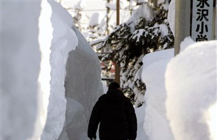 Lífshættuleg snjóþyngsli í Japan 10. janúar 2006 10:39 AP Að minnsta kosti 72 hafa látist vegna mikilla snjóa í Japan síðan í byrjun desember. Aldrei hefur snjóað jafn mikið en næstum fjórir metrar af snjó hafa fallið í landinu á þessum fimm vikum. Gamla metið var upp á rétt um þrjá metra. Hermenn hafa staðið í ströngu við að moka ofan af húsum þar sem yfir 200 manns hafa hreinlega lokast inni vegna snjóþyngslanna. Veðurspá gerir ráð fyrir því að það haldi áfram að snjóa í Japan næstu daga en undir helgi er gert ráð fyrir þýðu. APAPAPAPAPAPAPAP Erlent Fréttir Mest lesið Segir af sér þingmennsku vegna tilraunar til vændiskaupa Innlent „Í mínum huga eru þetta klárar ærumeiðingar“ Innlent „Lauslát mella“ hafi verið mildasta lýsingin á dómaranum Innlent „Þetta er ekki það sem við samþykktum“ Erlent Vill „nánast loka alfarið“ á útlendinga utan Evrópu Innlent Tók við verðlaunapeningnum og hyggst eiga hann Erlent Vilja Laugardalshöll líkt og þeim var lofað Innlent Eftirmaður Guðbrands í sjokki en klár í slaginn Innlent „Vonbrigði“ Innlent Kolbeinn Tumi tekur við af Erlu Björgu Innlent Fleiri fréttir Hótar tollum á ríki sem standa með Grænlendingum Hafa náð einu og hálfu prósenti af Úkraínu á þremur árum Milljónir Bandaríkjamanna hafi þungar áhyggjur vegna Grænlands Yfirvöld sögð rukka háar fjárhæðir fyrir afhendingu líka mótmælenda Fyrrverandi forseti dæmdur í fimm ára fangelsi „Þetta er ekki það sem við samþykktum“ Tók við verðlaunapeningnum og hyggst eiga hann Hafi afhent Trump Friðarverðlaun Nóbels Krefjast enn að fá að senda sérsveitarmenn til Mexíkó Veiki geimfarinn kominn aftur til jarðar Tóku enn eitt skipið Trump hótar að siga hernum á mótmælendur Kennir Selenskí enn og aftur um Ólafur Ragnar við CNBC: Afleiðingarnar „gífurlegar“ ef Bandaríkin tækju Grænland með valdi Þingmenn sem Trump sagði heimska lúffuðu Witkoff segir annan áfanga friðaráætlunarinnar hafinn Musk fellst á að hætta að framleiða kynferðislegar myndir en bara sums staðar Hætta vinnslu umsókna innflytjenda frá 75 ríkjum Trump segir stjórnvöld í Íran hætt að drepa mótmælendur Stuðningur við Grænland ómetanlegur og hvetur Íslendinga til að mæta Vilja geta sett herlög á eyju norðan Íslands Verðandi sendiherra grínaðist með að Ísland yrði 52. ríkið Síðustu ellefu ár þau hlýjustu í mælingasögunni 32 látnir eftir að krani féll á lest í Taílandi Rannsaka ásakanir á hendur Iglesias Sautján prósent Bandaríkjamanna styðja innlimun Grænlands Vaktin: Stofna vinnuhóp um framtíð Grænlands Tveir látnir eftir árekstur strætisvagna Reyna að tala Trump til og óttast afleiðingar árása Bandaríkjastjórn kemur barnaníðsefni Musk til varnar Sjá meira