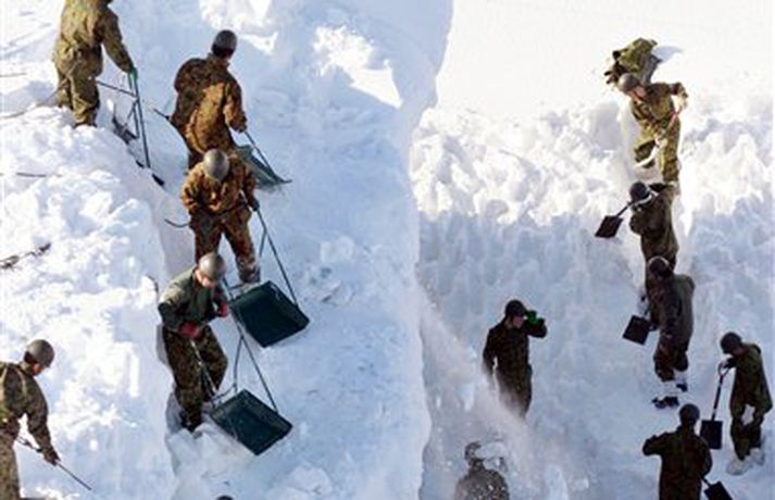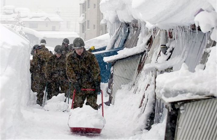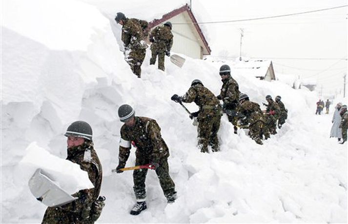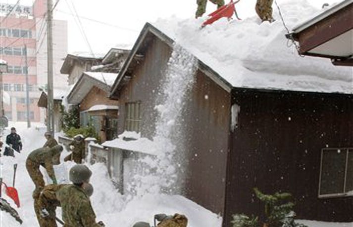 Að minnsta kosti 72 hafa látist vegna mikilla snjóa í Japan síðan í byrjun desember. Aldrei hefur snjóað jafn mikið en næstum fjórir metrar af snjó hafa fallið í landinu á þessum fimm vikum. Gamla metið var upp á rétt um þrjá metra. Hermenn hafa staðið í ströngu við að moka ofan af húsum þar sem yfir 200 manns hafa hreinlega lokast inni vegna snjóþyngslanna. Veðurspá gerir ráð fyrir því að það haldi áfram að snjóa í Japan næstu daga en undir helgi er gert ráð fyrir þýðu. APAPAPAPAPAPAPAP