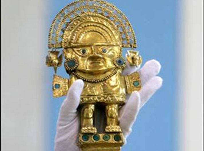 Seðlabankinn í Perú opnaði í gær sýningu á fornum munum frá menningarskeiðum Lambajek-Chimu og Nasca. Þessi menningarskeið hófust á 17. öld en gripirnir eru allir minnst 500 ára gamlir. Meðal muna á sýningunni eru dauðagrímur, skálar, bikarar og kassar úr gulli. Formaður þjóðmenningarstofnunar Perú minnir á að munirnir séu ekki einungis mikils virði út af gullinu eða aldri þeirra, heldur einnig vegna menningar- og tilfinningagildis, því munirnir hafi margir hverjir haft trúarlegan tilgang, meðal annars skartið.