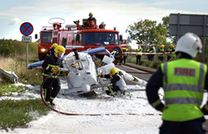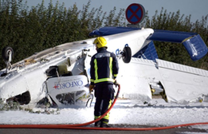 Tveir ungir Íslendingar björguðust á ótrúlegan hátt þegar eins hreyfils flugvél sem þeir voru í brotlenti skömmu eftir flugtak frá Oxford-flugvelli í gær. Flugvélin sjálf var í molum en Íslendingarnir tveir auk eins útlendings löbbuðu nær ómeiddir út úr brakinu og þykir það ganga kraftaverki næst. Ungu mennirnir eru báðir í flugnámi í Englandi og voru að taka á loft með kennara þegar mótorinn drap á sér í flugtaki, eftir því sem móðir annars þeirra segir frá. Strákarnir varð óneitanlega brugðið en annars sér ekki á þeim nema marbletti og skrámur. MYND/OxfordmailMYND/OxfordmailMYND/OxfordmailMYND/OxfordmailMYND/Oxfordmail