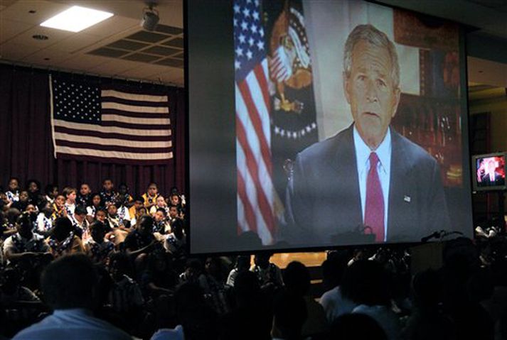 Stríðinu ekki lokið 12. september 2006 08:15 MYND/AP Bush Bandaríkjaforseti hvatti í gærkvöldi Bandaríkjamenn til dáða í baráttunni við hryðjuverkamenn og sagði hann stríðinu gegn þeim ekki lokið. Bush ávarpaði þjóð sína í sjónvarpi í tilefni þess að fimm ár voru í gær liðin frá hryðjuverkaárásunum á Bandaríkin. Hann sagði Bandaríkjamenn þurfa að setja ágreiningsmál sín til hliðar svo þeir gætu einbeitt sér að því að ná sigri í baráttunni gegn hryðjuverkamönnum. Bandaríkjaforseti fjallaði einnig um Íraksstríðið og sagði ljóst að stjórn Saddams Hússeins hefði verið ógn við alþjóðasamfélagið þrátt fyrir að hafa ekki ráðið yfir gjöreyðingarvopnum. Tveir mánuðir eru til þingkosninga í Bandaríkjunum og leggur Bush Bandaríkjaforseti nú mikla áherslu á að réttlæta stríðið í Írak sem nýtur sífellt minni stuðnings meðal almennings. Erlent Fréttir Mest lesið Ætlar ekki að beita sér í máli starfsmanns Útlendingastofnunar Innlent Sextán ára fékk greitt fyrir að færa Epstein stúlkur Erlent Málið sem Trump getur ekki losað sig við Erlent Hljóti að vera komið að því að skoða öryggisgæslu við skóla Innlent „Ég vil ekki nokkurn tímann sjá neitt svona aftur“ Innlent „Þetta er bara ljótt“ Innlent Milljónir til almannatengla og átta sinnum meira en í fyrra Innlent Systir og amma drengs í meðferð létust í Suður-Afríku Innlent Grunaður um manndráp eftir að tveggja ára drengur féll úr blokk Erlent Færir nýársboðið fram á þrettándann Innlent Fleiri fréttir Málið sem Trump getur ekki losað sig við Grunaður um manndráp eftir að tveggja ára drengur féll úr blokk Fóru um borð í vélvana rússneskt skip Baulað á Albanese á minningarathöfn á Bondi-strönd Kvarta yfir ritskoðun Epstein-skjala: „Við vitum ekki hvað við vitum ekki“ Níu skotnir til bana á krá Sextán ára fékk greitt fyrir að færa Epstein stúlkur Ljósmyndir horfnar úr Epstein-skjölunum, þar á meðal ein af Trump Vilja dauðarefsingu af borðinu vegna hagsmunaáreksturs ráðherra Pútín sagður hafa valið Witkoff Gerðu umfangsmiklar árásir gegn ISIS í Sýrlandi Það helsta úr fyrsta skammti Epstein-skjalanna Epstein-skjölin birt Draga tilvist neðanjarðarhafs á Títan í efa Réðust á skip úr skuggaflotanum þúsundir kílómetra frá Úkraínu Enn fleiri myndir úr safni Epsteins: „En hún vill þúsund dali fyrir hverja stúlku“ Trump vill til tunglsins fyrir 2028 Herða reglur og ráðast í endurkaup á skotvopnum Morðinginn í Brown háskóla fannst látinn Evrópa samþykkir 90 milljarða evra lán til Úkraínu Rannsaka tengsl skotárásarinnar við annað morð Sex um borð í einkaþotu sem hrapaði Beita dómara ICC refsiaðgerðum vegna Ísrael Taka á kvenfyrirlitningu með sérstöku námskeiði fyrir drengi Hæðist að og smánar fyrrverandi forseta á „frægðargangi“ Frú Macron í klandri eftir ósmekkleg ummæli um femínista „Dr. Dauði“ í lífstíðarfangelsi fyrir að myrða tólf Ekki hafi verið rétt að benda á Skandia-manninn sem morðingja Palme Myndskeið birt af Reiner eftir morðin og fyrir handtöku Sér eftir að hafa ekki sagt Eli oftar hve heitt hann elskaði hann Sjá meira