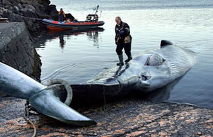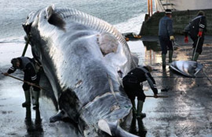 Þriðja langreyðurin skotin úti fyrir Snæfellsnesi 25. október 2006 13:22 Önnur langreyðurin við Hvalstöðina í Hvalfirði í gær. MYND/GVA Skipverjar á Hval 9 veiddu í dag þriðju langreyðina frá því að atvinnuveiðar hófust á ný í síðustu viku. Hvalveiðimenn hófu leit að hval um tíuleytið í morgun úti fyrir Snæfellsnesi þegar það var orðið leitarbjart og komu fljótlega auga hvalinn og fleiri til. Hvalurinn var svo skotinn rétt um hádegisbil en hann mun vera um 62 fet eða eilítið minni en fyrri hvalirnir tveir sem veiðst hafa. Hvalur 9 nú á leið með fenginn til Hvalfjarðar og er búist við að hann komi þangað um níuleytið í fyrramálið. Ekki liggur fyrir hvort báturinn fer þá aftur til veiða en að sögn bátsmanna virðist töluvert að langreyði við landið. AP fréttastofan birti myndir af vinnu við fyrstu langreyðina sem dregin er hér á land síðan árið 1989, þá var hún veidd í vísindaskyni. Yfir 20 ár eru liðin síðan langreyður var síðast veidd í atvinnuskyni en þar var árið 1985.APAP fréttastofan birti myndir af vinnu við fyrstu langreyðina sem dregin er hér á land síðan árið 1989, þá var hún veidd í vísindaskyni. Yfir 20 ár eru liðin síðan langreyður var síðast veidd í atvinnuskyni en þar var árið 1985.APAP fréttastofan birti myndir af vinnu við fyrstu langreyðina sem dregin er hér á land síðan árið 1989, þá var hún veidd í vísindaskyni. Yfir 20 ár eru liðin síðan langreyður var síðast veidd í atvinnuskyni en þar var árið 1985.APAP fréttastofan birti myndir af vinnu við fyrstu langreyðina sem dregin er hér á land síðan árið 1989, þá var hún veidd í vísindaskyni. Yfir 20 ár eru liðin síðan langreyður var síðast veidd í atvinnuskyni en þar var árið 1985.APAP fréttastofan birti myndir af vinnu við fyrstu langreyðina sem dregin er hér á land síðan árið 1989, þá var hún veidd í vísindaskyni. Yfir 20 ár eru liðin síðan langreyður var síðast veidd í atvinnuskyni en þar var árið 1985.APAP fréttastofan birti myndir af vinnu við fyrstu langreyðina sem dregin er hér á land síðan árið 1989, þá var hún veidd í vísindaskyni. Yfir 20 ár eru liðin síðan langreyður var síðast veidd í atvinnuskyni en þar var árið 1985.APAP fréttastofan birti myndir af vinnu við fyrstu langreyðina sem dregin er hér á land síðan árið 1989, þá var hún veidd í vísindaskyni. Yfir 20 ár eru liðin síðan langreyður var síðast veidd í atvinnuskyni en þar var árið 1985.AP Fréttir Hvalveiðar Innlent Mest lesið Kúgaðist og öskurgrét yfir lýsingum sonarins Innlent „Þetta verður allt saman stórvarasamt í fyrramálið“ Veður Myndskeiðið segi ekki alla söguna Innlent Rændur fyrir utan Costco um hábjartan dag Innlent Seðlabankinn rýmkar lánþegaskilyrði Innlent Lögreglan vill ná tali af þessu fólki Innlent Telur að of mikil saltnotkun geri moksturinn enn erfiðari Innlent Ástandið verði gjörbreytt í fyrramálið Innlent Spyr hvort ökumenn myndu keyra á gangandi á götunni Innlent Orðin hæsta kirkja í heimi Erlent Fleiri fréttir Rændur fyrir utan Costco um hábjartan dag Handtóku menn á tvítugsaldri vegna stórfelldrar fölsunar rafrænna skilríkja „Þetta er búið að ræna okkur innri ró“ Reiði meðal lögreglumanna Lögreglan vill ná tali af þessu fólki Lögreglustjóri situr sem fastast og spáin gerir krökkunum grikk Vonast til að geta bjargað föstum hnúfubak í fyrramálið Fagnar komu Dags um borð í evrubátinn Nær öllu innanlandsflugi aflýst Kúgaðist og öskurgrét yfir lýsingum sonarins Seðlabankinn rýmkar lánþegaskilyrði Mannekla hafi mikil áhrif á fangaverði Ástandið verði gjörbreytt í fyrramálið Íhugar ekki stöðu sína Þau sóttu um stöðu forstöðumanns Stafrænnar heilsu Hefði aldrei giskað á uppsagnir á hennar deild Svarar ekki beinum orðum hvort Sigríður Björk njóti trausts Langt í frá að málinu sé lokið Mest ánægja starfsfólks í sveitarfélögum á Suðurlandi Strætó enn á eftir áætlun en opnun hringvegarins í vinnslu Innanlandsflugi aflýst vegna veðurs Ríkislögreglustjóra sagt að endurskoða reksturinn og allt á floti í hlákunni Farþegagjald ólögmætt og höfnin skuldar tugi milljóna Bein útsending: Langvinn einkenni Covid Segja ríkislögreglustjóra þurfa að taka til hjá sér Telur að of mikil saltnotkun geri moksturinn enn erfiðari Hringvegurinn opinn á ný Ökumaður stöðvaður með snjófargan á framrúðunni „Því miður er verklagið þannig“ Opnun Brákarborgar frestað enn á ný Sjá meira