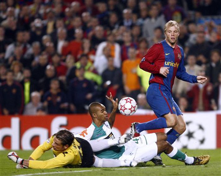 Eiður tryggði Barcelona sæti í undanúrslitum 5. desember 2006 22:01 MYND/AP Eiður Smári Guðjohnsen átti seinna markið í 2-0 sigri Barcelona á Werder Bremen á heimavelli í Barcelona í kvöld. Börsungar eru því komnir áfram í 16 liða úrslit meistaradeildar Evrópu, ásamt fyrrverandi félögum Eiðs í Chelsea, en þeir unnu riðilinn. Ronaldinho átti leifturskot á mark á þrettándu mínútu og kom liðinu yfir og Eiður gulltryggði síðan sigurinn. Mest lesið Fjölskyldufaðir þungt haldinn á spítala eftir alvarlega árás á þorrablóti Innlent Flutti til Reykjavíkur í dag Innlent Gabríel á bak við lás og slá fram á föstudag Innlent Drífa Snædal snýr aftur Innlent Þrír í haldi vegna stunguárásar: Gabríel Douane einn grunaðra Innlent Bauluðu á Vance af „evrópsku stolti“ Erlent Ari Edwald leiðir Miðflokkinn í borginni Innlent Þetta eru launin sem frambjóðendur geta vænst með kjöri í vor Innlent Málið mögulega fyrir dómstóla: „Ekkert eðlilegt við það að fá símtal frá stjórnendum“ Innlent Rektor Háskólans á Bifröst segir af sér Innlent Fleiri fréttir Hvetur Starmer til að segja af sér Bauluðu á Vance af „evrópsku stolti“ Áhrifamiklir norskir erindrekar rannsakaðir vegna Epsteins Vilja herða skilyrði fyrir sænskum ríkisborgararétti Vilhjálmur og Katrín hafi „djúpar áhyggjur“ vegna Epstein-afhjúpunar Christchurch-morðinginn vill draga játninguna til baka Jimmy Lai dæmdur í 20 ára fangelsi Afgerandi sigur stjórnarflokkanna í Japan Prinsinn fyrrverandi deildi trúnaðarupplýsingum með Epstein Kviknaði í minnisvarða um fórnarlömb eldsvoðans Nánasti ráðgjafi Starmers segir af sér Japanir halda í kjörklefana Bandaríkjamenn vilji að stríðinu verði lokið í júní Birtu ekki baulið Segist ekki hafa gert mistök við birtingu myndbandsins Kveðst vera í mjög krefjandi stöðu og þurfi tíma til að ná áttum Íslendingarnir næstum lent í stórslysi vegna alvarlegra mistaka Höfnuðu kröfum Bandaríkjamanna Trump birti myndband af Obama-hjónum sem öpum Neytandi njósnakláms varð fórnarlamb Tugir látnir eftir sprengjuárás í Islamabad Flúði fílahjörð í kjaftinn á krókódíl Mynd af Dorrit með Mette-Marit og Maxwell vekur athygli í Noregi Hik komið á lýtalækna í kjölfar bótadóms vegna kynleiðréttingar Rússar í vandræðum með netið í Úkraínu Umferðin í klessu vegna mikillar snjókomu í Danmörku Hátt settur leyniþjónustumaður skotinn og særður í Moskvu Fór í flugtak af akbraut og hafnaði úti á grasi Bandaríkjamenn og Rússar taka upp formleg samskipti á ný Hvetur til allsherjarverkfalls ef Trump reynir að stela þingkosningunum Sjá meira