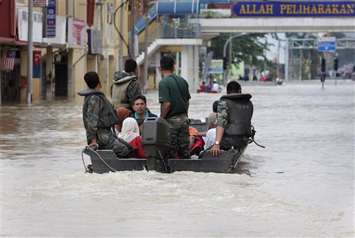 Verstu flóð í Indónesíu og Malasíu í 40 ár 23. desember 2006 15:34 MYND/AP Að minnsta kosti 12 eru látnir og nærri hundrað þúsund manns hafa þurft að yfirgefa heimili sína í verstu flóðum i Malasíu og Indónesíu í fjörtíu ár. Héruðin Johor, Negri Sembilan, Kelanta og Pahang í Malasíu urðu verst úti í flóðunum en í Inódnesíu varð tjónið mest á norðanverðri Súmötru. Flóðin urðu eftir vikuúrhelli á svæðinu og segja yfirvöld í báðum löndum að ekki hafi rignt svo mikið þar í yfir hundrað ár. Auk þeirra sem létust og misstu heimili sín eru fjölmargir án matar, rafmagns og hreins vatns. Fórnarlömb flóðanna hafar kvart undan lítilli aðstoð frá yfirvöldum og hermt er að björgunarmenn hafi krafist greiðslu fyrir að koma fólki til aðstoðar. Mest lesið Þau kvöddu á árinu 2025 Erlent Hitinn fór í 19,8 stig og desembermetið slegið Veður Klæðning fauk af Stjórnsýsluhúsinu og skemmdi bíla Innlent Seinfeld og Friends-leikari látinn Erlent Fundu yfir milljón skjöl sem tengjast Epstein Erlent Hvar er opið á aðfangadag? Innlent Fimm fórust í þyrluslysi á Kilimanjaro Erlent Fátækari eftir að hafa svindlað á ferðakonum Innlent Einn fluttur á sjúkrahús eftir bílslys Innlent Þörf á að skerpa á verklagi spítalans í heimilisofbeldismálum Innlent Fleiri fréttir Fjallaði um stríðsátök í jólaávarpinu Fundu yfir milljón skjöl sem tengjast Epstein Seinfeld og Friends-leikari látinn Fimm fórust í þyrluslysi á Kilimanjaro Þau kvöddu á árinu 2025 Kynnti drög að nýrri friðaráætlun Tveir lögreglumenn sprengdir í loft upp Blússandi hagvöxtur í Bandaríkjunum Nýjar ákærur á hendur Russell Brand Fleiri Epstein-skjöl birt: Bað um „óviðeigandi vinkonur“ Saka AfD um að ganga erinda Kremlverja Kínverjar og Rússar lýsa yfir stuðningi við Venesúela Skapari Call of Duty lést í bílslysi Trump nefnir nýja kynslóð orrustuskipa í höfuðið á sjálfum sér „Bandaríkin eiga ekki að taka yfir Grænland“ Nýr ritstjóri stöðvaði umfjöllun um brottvísanir Trump Breiddi út faðminn fyrir rasista: „Þið þurfið ekki að biðjast afsökunar á að vera hvít lengur“ Sprengdu rússneskan hershöfðingja í loft upp í Moskvu Undirbúningur árásarinnar stóð yfir í marga mánuði Trump skipar sendifulltrúa fyrir Grænland Segir unnið að því að móta sameiginlega nálgun Bandaríkjanna, Úkraínu og Evrópu Sýknaður af nauðgun eftir að hafa verið skimaður fyrir sjaldgæfri svefnröskun Málið sem Trump getur ekki losað sig við Grunaður um manndráp eftir að tveggja ára drengur féll úr blokk Fóru um borð í vélvana rússneskt skip Baulað á Albanese á minningarathöfn á Bondi-strönd Kvarta yfir ritskoðun Epstein-skjala: „Við vitum ekki hvað við vitum ekki“ Níu skotnir til bana á krá Sextán ára fékk greitt fyrir að færa Epstein stúlkur Ljósmyndir horfnar úr Epstein-skjölunum, þar á meðal ein af Trump Sjá meira