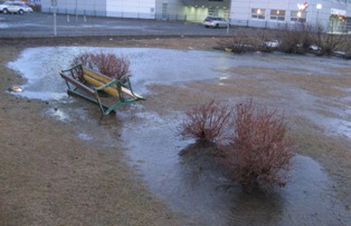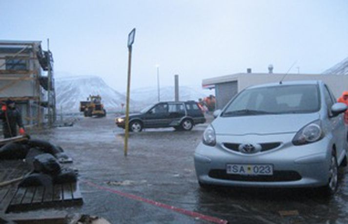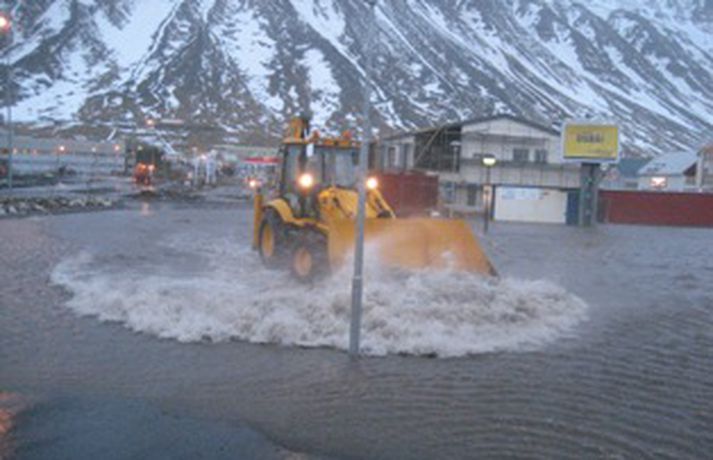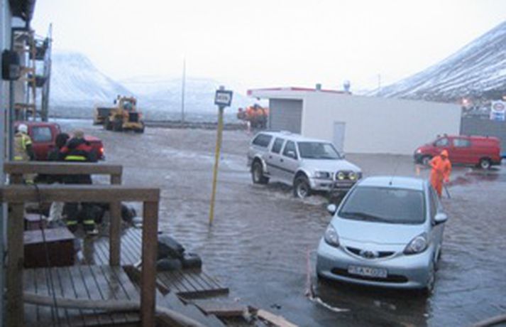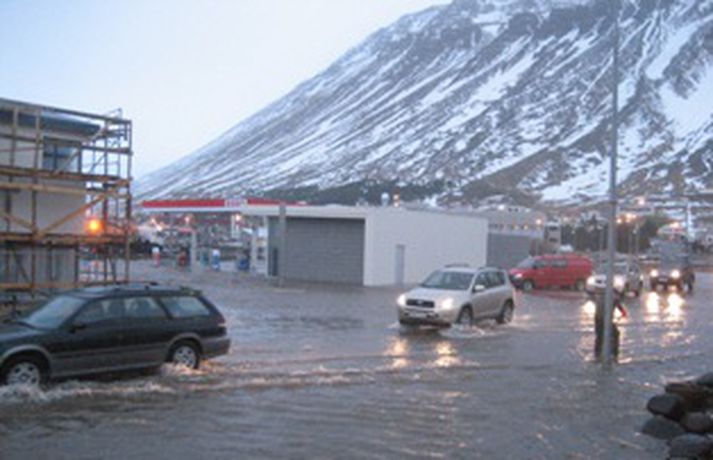 En það þurfti líka að dæla vatni af götum bæjarins, sérstaklega við Bensínstöð ESSO við Hafnarstræti en þar safnaðist vatnið fyrir á bílaplani. Skemmdir urðu á dælubúnaði á bensínstöðinni og er því ekki hægt að afgreiða þar eldsneyti fyrr en á morgun þegar varahlutir koma frá Reykjavík. Þá var um tíma óttast að vatn hefði lekið í eldsneytistanka í jörðu en svo reyndist ekki vera.