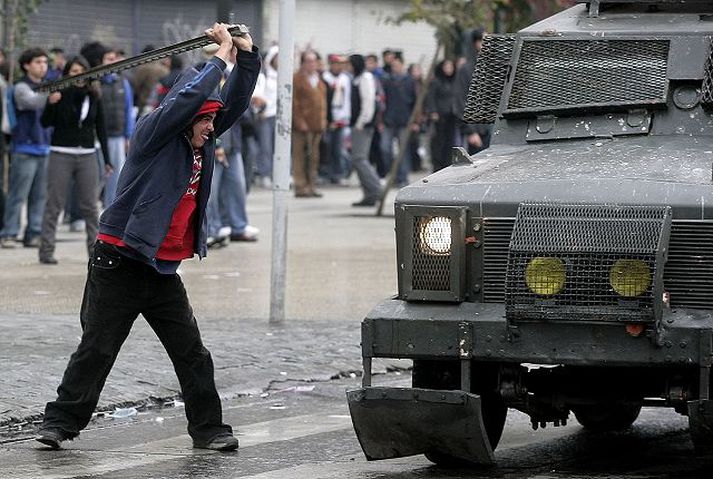 Óeirðir brutust út í Chile 31. mars 2007 04:00 Að minnsta kosti 32 chileskir lögreglumenn slösuðust og 819 manns voru handteknir í óeirðum í höfuðborg landsins, Santiago, og nokkrum öðrum borgum. Óeirðirnar brutust út á fimmtudagsmorgun í kjölfar mótmæla námsmanna í tilefni af „Degi hinna ungu vígamanna“ þegar chileskir vinstrimenn minnast tveggja ungra bræðra sem lögregla myrti árið 1985. Mótmælendur settu upp logandi vegatálma og voru sumir hverjir vopnaðir. Einhverjir létu greipar sópa í verslunum. Einn lögreglumaður var sagður alvarlega særður eftir að hafa verið skotinn þegar hann reyndi að hindra mótmælendur í að ræna stórmarkað. Mest lesið Haraldur Sigurðsson – Halli – er látinn Innlent Svo margir á skíðum að lögreglan skarst í leikinn Innlent Spyr hvernig fólk muni ná endum saman Innlent Deilt um opnunartímann: „Sonur minn var hundfúll út í mig“ Innlent Tryggingar lækki verulega verði ráðist í nauðsynlegar úrbætur Innlent Skipti um akrein í tæka tíð þegar bíll ók á móti umferð Innlent Verkalýðsleiðtogar hjóla í Viðskiptaráð Innlent Handtekinn fyrir að bakka ítrekað á hús Innlent Gagnrýnir að ekki séu settar strangari kröfur á verktaka Innlent Spyr hvort skoða þurfi mögulega árekstra eiginmanns ráðherra og fráfarandi forstjóra Innlent Fleiri fréttir Stuðningur við norsku konungsfjölskylduna í frjálsu falli Rússneskir tölvuþrjótar réðust á grænlenskar heimasíður Til skoðunar að taka Andrew úr erfðaröðinni Svaraði tolladóminum með því að leggja toll Íranski byltingarvörðurinn kominn á hryðjuverkalista ESB og á Íslandi Toppurinn kominn á hæstu kirkju heims Huldumaður gaf gullstangir til að laga vatnslagnir borgarinnar Spenna eykst á einum helgasta stað gyðinga og múslima Áfram húsleit á fyrra heimili Andrews „Mjög, mjög sorglegt“ Bandaríkjastjórn opnar síðu þar sem Evrópubúar geta séð lokað efni Andrew látinn laus Norðmenn koma af fjöllum og taka fyrir ummæli Trump Nýjar forsetaflugvélar fá Trump-litina „Besti vinur“ Epsteins ætlaði að leysa frá skjóðunni 2016 Karl III: Réttlætið verður að hafa sinn gang Viðbúnaðurinn ekki verið eins mikill frá innrásinni í Írak Andrew handtekinn á heimili sínu Rétta yfir fjórtán ára gömlum leigumorðingja Tjáningarfrelsistal tæknirisa „hreinn þvættingur“ „Grunlaus“ Wexner segist hafa verið gabbaður af Epstein Skíðahópur fórst í snjóflóði í Kalíforníu Fyrrverandi forseti Suður-Kóreu í lífstíðarfangelsi Umdeilt Friðarráð fundar í Washington í dag Tengiltvinnbílar þrefalt eyðslufrekari en framleiðendur segja Verjast fregna af viðræðum dagsins „Stjórinn“ að fá nóg og líkur á árásum Kennir Selenskí um misheppnaða gagnsókn Þrýsta á Alþjóðaorkumálastofunina að hætta við orkuskipti Reyna aftur á morgun Sjá meira