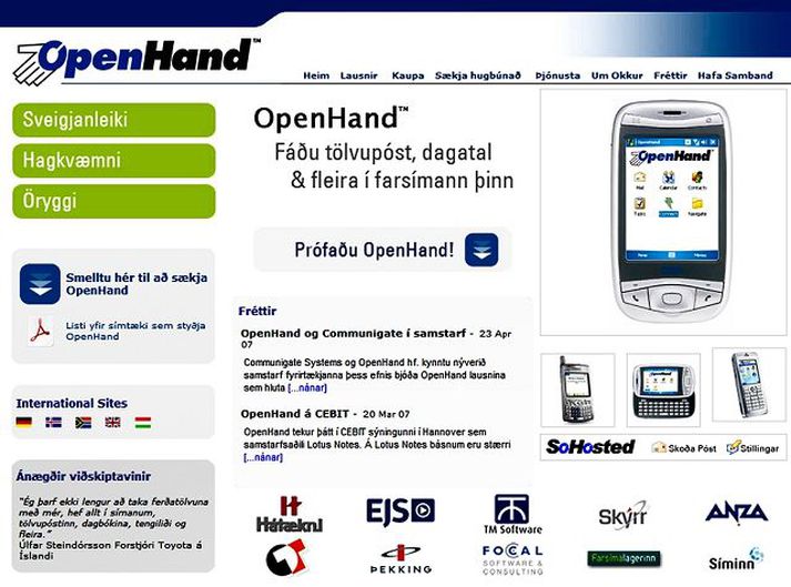 OpenHand með herferð í Bretlandi 2. maí 2007 00:01 Heimasíða OpenHand Hugbúnaðarfyrirtækið OpenHand hyggur á mikla markaðsherferð í Bretlandi þar sem byggt verður á samstarfi og stuðningi við endursölunet fyrirtækisins þar. Fyrirtækið hefur að bjóða sérsniðnar samskiptalausnir fyrir farsíma. Að sögn Davíðs S. Guðmundssonar, sölu og markaðsstjóra OpenHand, eru núna um 450 endursöluaðilar í Bretlandi en til stendur að þeir verði orðnir fleiri en þúsund fyrir lok þessa árs. „Við erum að hefja dreifingu á gagnvirkum geisladiski í Bretlandi þar sem viðskiptavinurinn getur viðstöðulaust, þegar hann skoðar efnið, fengið hugbúnað okkar í hendur," segir Davíð og bætir við að byggt verði á þessari markaðssetningu í frekari sókn víðar um heim. Hann segir OpenHand hafa verið í ákveðinni endurskipulagningu þar sem mun meiri áherslu sé lögð á sölu- og markaðsmál en áður. „Við erum sóknfastari og má segja að við förum úr því að vera tæknidrifið fyrirtæki yfir í að vera þjónustudrifið." Í kringum herferð OpenHand er skipulagt mikið kynningarstarf sem stjórnað er héðan, en bresk almannatengslastofa vinnur einnig náið með fyrirtækinu. Nokkur vöxtur hefur verið í starfsemi OpenHand og fyrirtækið náð samningum bæði í Suður-Afríku og Þýskalandi. Davíð segir rannsóknir sýna að evrópski markaðurinn sé langt frá mettun, en vel innan við tíu prósent þeirra sem noti tölvupóst við vinnu noti einhvers konar lausn til að fá viðskiptaupplýsingar í farsíma. „Ljóst er því að mikil sóknarfæri liggja á þessum mörkuðum," segir hann, en OpenHand hóf einnýverið starfssemi í Ungverjalandi með frekari sókn austur á bóginn í huga. Það verkefni gengur vonum framar og hafa útibú alþjóðlegra fyrirtækja sýnt lausninni mikinn áhuga. Aðilar í nærliggjandi löndum hafa sýnt endursölu áhuga og eru nokkur slík verkefni í skoðun. Tækni Mest lesið Bærinn bótaskyldur og þarf að bjóða líkamsræktarstöð út aftur Viðskipti innlent Virðist ekki vera hægt á Íslandi Viðskipti innlent Húðflúrari fór frá hálfkláruðum fugli á hálsi Neytendur „Áhyggjuefni ef fyrirtækin mæta þessu með semingi“ Neytendur Flogin frá Icelandair til Nova Viðskipti innlent Icelandair ræður þrjá nýja stjórnendur til starfa Viðskipti innlent Skattleysismörk barna yngri en 16 ára hækka Viðskipti innlent „Ég verð að segja að ég er svolítið hlessa“ Neytendur Frosti og Arnþrúður fá styrki Viðskipti innlent Kvartanir berast í hverri viku vegna gjafabréfa Neytendur Fleiri fréttir Bærinn bótaskyldur og þarf að bjóða líkamsræktarstöð út aftur Flogin frá Icelandair til Nova Virðist ekki vera hægt á Íslandi Minni líkur á vaxtalækkun: „Þeim verður vandi á höndum, seðlabankafólkinu“ Skattleysismörk barna yngri en 16 ára hækka Frosti og Arnþrúður fá styrki Verðbólga eykst verulega Hefja sölu á fyrstu hliðstæðu við Simponi í heiminum Stefán útvarpsstjóri gáttaður á Stefáni útvarpsstjóra Framkvæmdastjóri Lyfjavals hættur Eyða óvissu á lánamarkaði strax á mánudag Ljúka kaupum á Hreinsitækni og HRT þjónustu Gréta María um starfslokin: „Ég geng stolt frá borði“ Síminn fær heimild til að reka áfram 2G og 3G þjónustu Breyta nafni Ölgerðarinnar Jón Ingi nýr forstjóri PwC Tekur við sem hagfræðingur Viðskiptaráðs Gréta María óvænt hætt hjá Prís Ráðinn nýr fjármála- og rekstrarstjóri Lyfja og heilsu Þrír eða færri skoða eign í fyrstu viku á sölu Byrjunarverð hjá NiceAir tæplega sextíu þúsund krónur Leigan rukkuð mánaðarlega en ekki í lokin Frá Logos til Samtaka fyrirtækja í sjávarútvegi Alcoa stefnir Eimskip að nýju í samráðsmáli Aron Kristinn stofnar goðsagnakennt fyrirtæki Vill verða stjórnarformaður Íslandsbanka: „Hvaða sirkus er þetta?“ Geta þurft að greiða hátt verð fyrir póstsendar gjafir Segja ráðherra fórna íslenskum hagsmunum í makrílsamningi Ísland gerir samkomulag um makrílveiðar í fyrsta skipti Sif nýr framkvæmdastjóri Aton Sjá meira