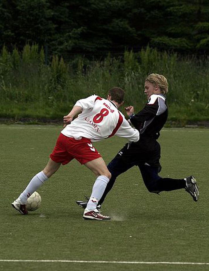 Karlar og konur keppa saman 5. júní 2007 05:00 Hart er barist í utandeildinni í knattspyrnu. Þessi mynd er úr leik CCCP og Hjörleifs. Í utandeildinni fá margir útrás fyrir knattspyrnuáhugann án þess að það éti upp allan frítímann. Deildin er öllum opin. Utandeildin í knattspyrnu er hafin. Þar etja um 600 knattspyrnuáhugamenn í 33 liðum kappi í þremur riðlum og bítast um deildartitil og bikartitil. Deildin er ætluð þeim fjölmörgu aðdáendum knattspyrnu sem vilja spila á stórum velli í ellefu manna liði en hafa ekki áhuga, tíma eða getu til að spila með liðum sem taka þátt í Íslandsmótinu. Hver sem er getur skráð lið til leiks í utandeildinni þótt of seint sé að taka þátt í sumar. Reglurnar eru hefðbundnar nema hvað spilað er í tvisvar 40 mínútur, engar hömlur eru á fjölda leikmanna á varamannabekk og ótakmarkaðar skiptingar mega eiga sér stað. Einn dómari dæmir leiki og því ekki vænlegt að spila rangstöðutaktík fyrr en í úrslitakeppninni, en þá bætast línuverðir í hópinn. Deildin er opin bæði konum og körlum og þótt karlar séu í yfirgnæfandi meirihluta eru nokkur lið með konur innanborðs. Enn hefur ekkert lið skipað fleiri konum en körlum tekið þátt en einu sinni verður allt fyrst. Liðin leggja mismikið upp úr þjálfun leikmanna en flestir taka þátt gamansins vegna. Deildin er getuskipt og þó að getan nái ekki nema hálfa leið upp í áhugann eiga allir raunhæfan möguleika á að ná í einhver stig, eða í versta falli skora nokkur mörk. Mest lesið Leitin á Svínafellsjökli sem hefur enn ekki skilað árangri Lífið „Sat í átta klukkutíma á dag og horfði út um gluggann“ Menning Bandalag listamanna lýsir yfir stuðningi við Dóru Menning Bestu, stærstu, slökustu og verstu myndir ársins 2025 Bíó og sjónvarp Frægir fundu ástina 2025 Lífið „Ég heyrði þá kalla á mig en gat engu svarað“ Lífið „Það jafnar sig enginn eftir svona og við munum aldrei gera það“ Lífið Best klæddu Íslendingarnir 2025 Tíska og hönnun Krakkatía vikunnar: Ísskápastríð, Eivör og Grafarvogur Lífið „Ef einhver telur að ég hljóti að vera sjúkur, þá verður að hafa það“ Menning